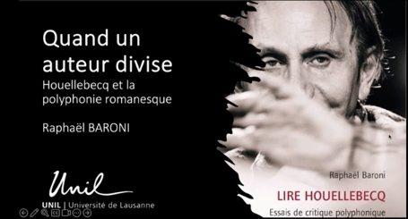 2023-24年度初回セミネールの内容は、『ウエルベックを読む Lire Houellebecq』(スラットキン社、2022年)の著者であるラファエル・バローニ(Raphaël Baroni)氏による「作者が分裂するとき──ウエルベックと小説的多声 Quand un auteur divise. Houellebecq et la polyphonie romanesque」と題された講演と質疑応答です。